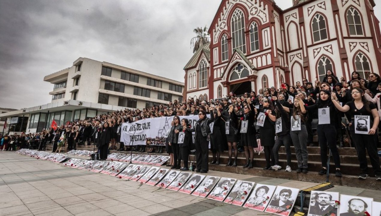 A 50 años de ocurrido el golpe de Estado en el país, un centenar de mujeres vestidas completamente de negro realizaron una sentida ceremonia para inmortalizar una nueva conmemoración del 11 de septiembre, acto histórico que desde 1984 familias exigen saber de sus seres queridos desaparecidos y detenidos en la dictadura.